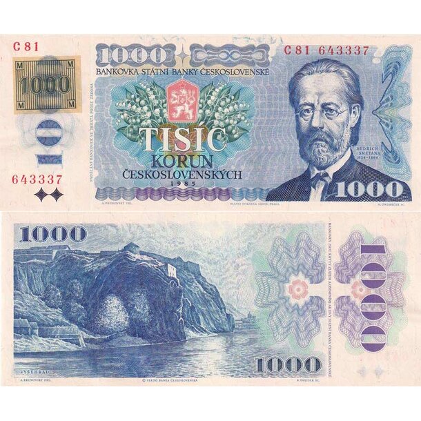 1000 Korún 1985 Česká republika - séria C (kolok lepený 1993)
