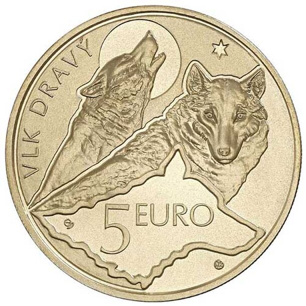 Pamätná minca Slovenskej republiky 2021, nominálnej hodnoty 5 EURO "Fauna a flóra na Slovensku – vlk dravý"