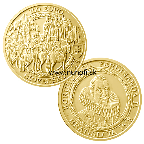 Dňa 16. mája 1618 zasadol uhorský snem a podľa Matejovho želania schválili za budúceho uhorského kráľa jeho bratranca arciknieža Ferdinanda. Na korunováciu Ferdinanda II. v Prešporku bol vybraný dátum 1.júl 1618. Kráľ Ferdinand II. bol korunovaný uhorským arcibiskupom Petrom Pázmanym a palatínom Žigmundom Forgáčom. Matej II. sa korunovácii kvôli chorobe nezúčastnil. Banková rada NBS na základe odporúčania schválila návrh autora Karola Ličku. Na averze je stvárnený korunovačný sprievod a na reverze je portrét panovníka Ferdinanda II.