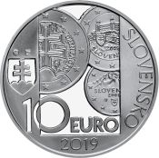 Lícna strana:Na líci mince sú vyobrazené časti národných strán slovenských obehových euromincí so všetkými tromi používanými motívmi – dvojkrížom na trojvrší, Bratislavským hradom a tatranským štítom Kriváňom. Štátny znak Slovenskej republiky je v ľavej časti mincového poľa. Názov štátu SLOVENSKO je v opise pri pravom okraji mince. Označenie nominálnej hodnoty mince 10 EURO je v spodnej časti mincového poľa. Pod ním je letopočet 2019. Značka Mincovne Kremnica MK a štylizované iniciálky autora výtvarného návrhu mince akad. soch. Zbyňka Fojtů ZF sú nad štátnym znakom Slovenskej republiky.