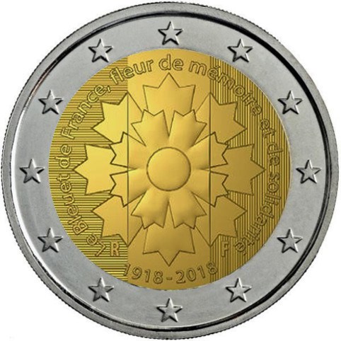 La Monnaie de Paris vydá euromincu, ktorá pripomína sté výročie konca prvej svetovej vojny. Očakávaný dátum vydania minca s názvom "Le Bleuet de France" by mal byť 5. februára 2018. Objem emisie 10 miliónov kusov.
