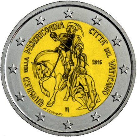 Druhou tohtoročnou pamätnou 2 eurovou mincou, ktorú vydá Vatikán v tomto roku 2016 bude minca s témou Svätý rok milosrdenstva. Objem emisie je stanovený na 105 00 ks. A predpokladaný dátum emisie bude október 2016.