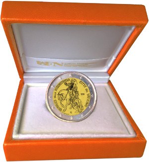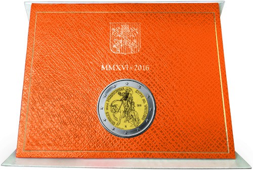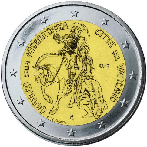 Na národnej strane je vyobrazený svätý Martin z Tours, ktorý sa delí o svoj plášť so žobrákom. Okolo motívu sa nachádza v polkruhu na ľavej strane nápis „GIUBILEO DELLA MISERICORDIA" a na pravej strane nápis „CITTÀ DEL VATICANO". Na pravej strane je takisto umiestnený rok vydania „2016" a v dolnej časti sa nachádza značka mincovne „R" a meno umelca „M. CRISCIOTTI". Vo vonkajšom prstenci mince je vyobrazených dvanásť hviezd vlajky Európskej únie. Náklad: 80 000 ks v bežnej kvalite a v proof kvalite bude 10 000 ks