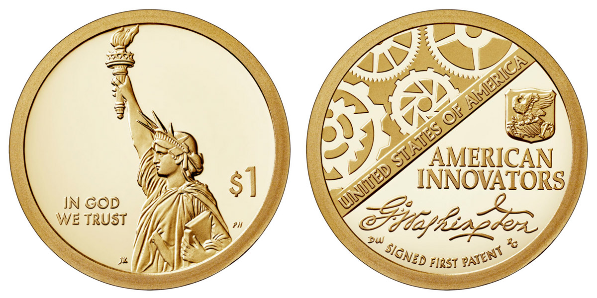 Averzná strana mince bude rovnaká, objaví sa na všetkých minciach v priebehu rokov a zobrazuje Sochu slobody so slovami „V BOHA DÔVERUJEME“ a „1 dolár“ (navrhnuté Justin Kunz a vyrezával Phebe Hemphill). Rubová strana bude mať jedinečný dizajn a požadovaný nápis: „United States of America“. Okraj mince bude pozostávať z hladkého okraja s nápisom „E PLURIBUS UNUM“, rokom razby a značkou mincovne. Úvodná minca roku 2018 obsahuje na prednej strane Sochu slobody a nápis „AMERICAN INNOVATORS“ a vyobrazenie podpisu Georga Washingtona, ktorý bol použitý pri vôbec prvom patente USA vydanom 31. júla 1790.