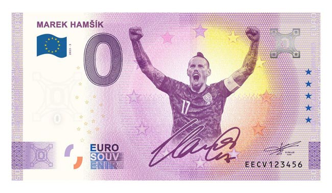 Ani tento rok nebude na Bratislavských zberateľských dňoch chýbať exkluzívny predaj nulaeurovej suvenírovej bankovky, ktorá prichádza v dvoch nových motívoch. Na jednej z nich je vyobrazený slovenský futbalista Marek Hamšík, v limitovanom množstve 5 tisíc kusov.