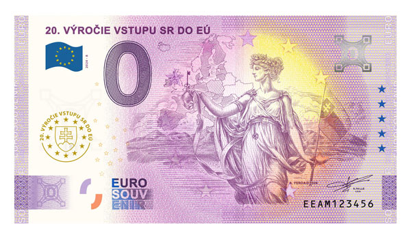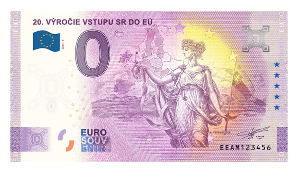 Druhým zberateľským kúskom, ktorý bude k dispozícii na Bratislavských zberateľských dňoch, je eurosuvenír s motívom 20. výročia vstupu Slovenskej republiky do EÚ. Prvého mája 2004 Slovenská republika spolu s ďalšími deviatimi krajinami vstúpila do Európskej únie. Tento eurosuvenír má pripomenúť práve tento významný deň, ktorý sa zlatým písmom zapísal do dejín Slovenskej republiky. Vstupom do Európskej únie sme zavŕšili dlhodobé snahy o pripojenie sa k tomuto prospešnému spoločenstvu, ktoré prináša každému obyvateľovi Slovenska veľké množstvo výhod. Prehĺbila sa spolupráca medzi krajinami, pribudla možnosť slobodného cestovania v rámci EÚ, vznikla inštitúcia Erazmu, ktorá umožňuje študentom získavať skúsenosti v zahraničí, prijatím Eura vznikla silnejšia mena zastupujúca viacero členov EÚ a mnoho ďalšieho.