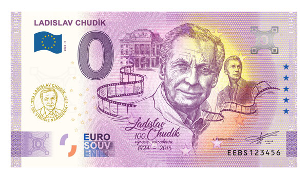 Ani tento rok nebude na Bratislavských zberateľských dňoch chýbať exkluzívny predaj nulaeurovej suvenírovej bankovky, ktorá prichádza v dvoch nových motívoch. Na jednej z nich je vyobrazený Ladislav Chudík, ktorý by sa v roku 2024 dožil 100 rokov. Jeho životná púť započala 27. mája v obci Hronec na Horehroní, dožil sa úctyhodných 91 rokov. Jeho výnimočný talent spojený s divadlom začal v roku 1944, pôsobením v SND. Pre celé Československo sa stal legendou účinkovaním vo viacerých filmoch a seriáloch. Je pozoruhodné, že v televíznom vysielaní pôsobil už od začiatku samotného vysielania na Slovensku. Z výnimočných postáv, ktoré stvárnil, možno spomenúť Primára Sovu v seriáli Nemocnica na okraji mesta, kapitána Dabača z rovnomenného filmu prípadne postavu kráľa v rozprávke Soľ nad Zlato, no bolo ich samozrejme omnoho viac. Pán Chudík pôsobil v divadle a filme až do svojej deväťdesiatky. Krátko na to bohužiaľ ochorel a navždy nás opustil 29. júna 2015.