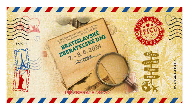 Tento rok bude na Bratislavských zberateľských dňoch premiérovo predstavený aj LOVE CARD. Nebude to síce prvé slovenské vydanie, ale keďže sa jedná o okrúhly 20. MEDZINÁRODNÝ ZBERATEĽSKÝ VEĽTRH, bude špeciálne s motívom práve Bratislavských zberateľských dní a v špeciálnom limitovanom náklade. Okrem toho bude k dispozícii v stánku Nunofi.sk aj špeciálna príležitostná pečiatka, ktorou si záujemcovia budú môcť bezplatne opečiatkovať vydanie Love Card s motívom Bratislavských zberateľských dní, ale aj akékoľvek iné vydania.
