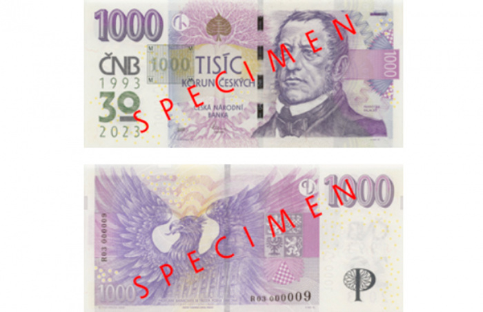 Presne 30 rokov od zahájenia úspešného rozdelenia česko-slovenskej meny vydá Česká národná banka novú bankovku 1 000 Kč s prítlačou v podobe bankovkového kolku a výročného loga. K dostaniu bude od 8. februára 2023 výmenou za iné české bankovky alebo mince v hodnote 1 000 Kč na pokladniach všetkých pracovísk ČNB, a to do vyčerpania zásob. Výročnú bankovku tvorí tisíc korún vzoru 2008 s prítlačou na lícnej strane kupónu. Vzhľadom na to, že bankovka odkazuje na 30. výročie vzniku českej a slovenskej koruny, s ktorým bolo spojené okrem iného kolkovanie bankoviek, tvorí túto prítlač práve motív dobového tisíckorunového bankovkového kolku z roku 1993 a tiež výročné logo 30 rokov ČNB od akademického maliara Jána Solera . Prítlač nemá vplyv na hodnotu ani platnosť bankovky, možno ju teda použiť na platby za tovar a služby.