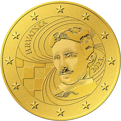 Mince 50, 20 a 10 centov (navrhnuté občanmi) predstavujú Nikolu Teslu, jedného z veľkých vynálezcov 19. storočia narodeného v Chorvátsku. Vynálezca, inžinier a fyzik Nikola Teslu položil základy pre striedavý prúd, vrátane viacfázového elektrického rozvodného systému a striedavého motora, ktorý umožnil druhú priemyselnú revolúciu. Dizajn chorvátskej 1 euro mince