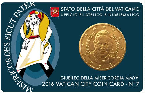 Coinard No. 7 - laminovaná karta zobrazujúca logo Svätého roku milosrdenstva a obsahujúca mincu 50 centov 2016 - bežná kvalita