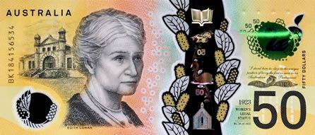 Podľa rôznych zdrojov nová bankovka v hodnote 50 dolárov (B233a) vydaná 18. októbra 2018 obsahuje preklep v mikroprintingu. Konkrétne, zadná časť poznámky obsahuje prvý prejav Edith Cowanovej v parlamente v mikrotextu nad jej ramenom, v ktorom je slovo „zodpovednosť“ ("responsibility") opakovane nesprávne napísané ako „zodpovednosť“( "responsibilty") bez tretieho „i“ na konci slova. Reserve Bank of Australia uznala chybu a plánuje opraviť chybu v budúcom nákladu.
