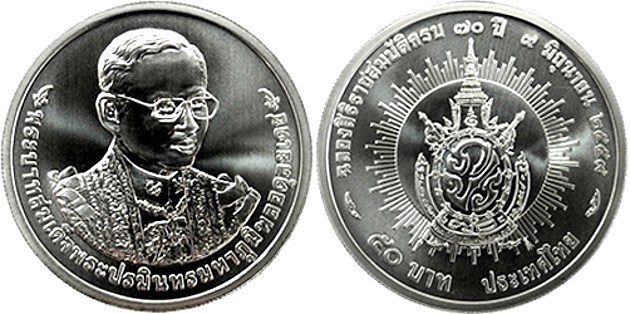 Pri príležitosti 70. výročia nástupu thajského kráľa Bhumibola Aduljadeja vydala ich centrálna banka sériu pamätných mincí a bankoviek. Pamätné mince boli vyrazené z meď-niklu v objeme emisie 2 000 000 ks.