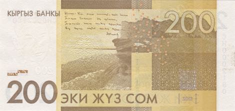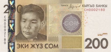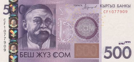 Od 1. januára 2017 platia v Kirgizskej republiky nové vzory bankoviek. Sú zhodné s predchádzajúcimi bankovkami ale majú zrevidované portréty v ľavej prednej strane a okrúhly ornament v strede prednej strany, vpravo dole je vytlačený rok 2016.
