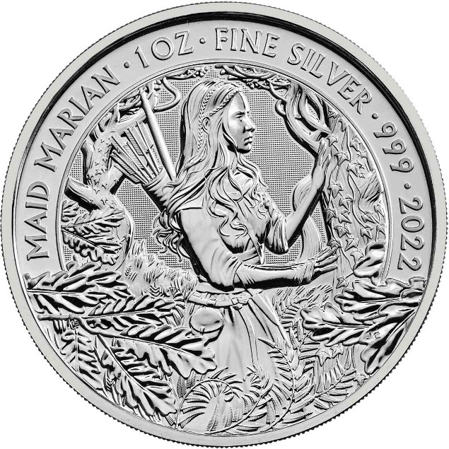 Minulý rok začala Kráľovská mincovňa novú sériu mincí pod názvom „Mýty a legendy“, jedná sa o kusy investičného typu, dostupné buď v unci striebra alebo v unci zlata. Hrdinom prvého bol Robin Hood, populárna postava, ktorá stelesňovala požiadavky spravodlivosti utláčaných tried v Anglicku. Tento rok je hlavnou hrdinkou partnerka legendárneho psanca Lady Marian, ktorá je zastúpená ako žena zbraní.