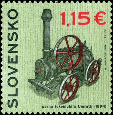 Deň vydania: 15. 04. 2016 Nominálna hodnota: 1,15 € Rozmery známky: 37.5 x 37.5 mm Forma tlačového listu: TL Počet známok na tlačovom liste: 50 Počet známok v sérii: 1 Autor výtvarného návrhu známky: Marián Komáček Tlačiareň: Poštovní tiskárna cenin, a.s., Praha, Česká republika Technika tlače: Rotačná oceľotlač v kombinácii s hĺbkotlačou Textový motív: parná lokomobila Umrath (1894) Obrazový motív: Parná lokomobila Umrath. Príležitostná poštová pečiatka používaná v Nitre pri príležitosti slávnostnej inaugurácie poštovej známky Technické pamiatky: Parná lokomobila Umrath (1894).