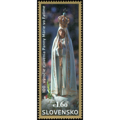 Príležitostná poštová známka v hárčekovej úprave vydaná pri príležitosti 100. výročie zjavenia vo Fatime. Údaje o známke Deň vydania: 13. 03. 2017 Nominálna hodnota: 1,60 € Rozmery známky: 30 x 80 mm Forma tlačového listu: HA Počet známok na tlačovom liste: 1 Počet známok v sérii: 1 Tlačiareň: Poštovní tiskárna cenin, a.s., Praha, Česká republika Technika tlače: Ofset Náklad: 80000 Textový motív: 100. výročie zjavenia Panny Márie vo Fatime Obrazový motív: Socha Panny Márie Fatimskej.