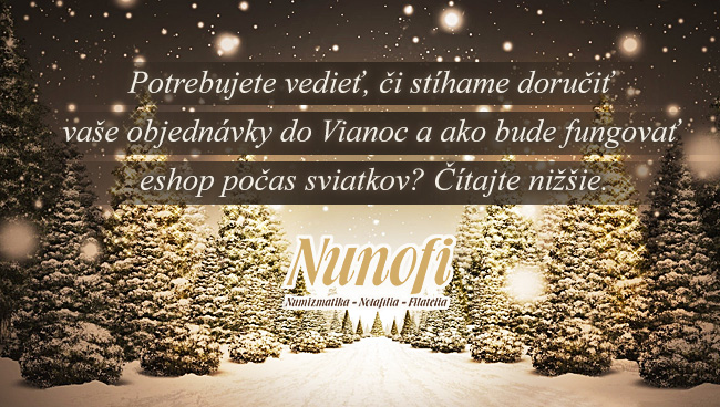 Milí zberatelia, obdobie Vianoc sa blíži a s ním aj úprava vybavovania a expedície objednávok vášho obľúbeného internetového obchodu so zberateľskými potrebami a predmetmi Nunofi.sk. Samozrejme, samotný internetový obchod a možnosť objednať si vaše obľúbené predmety bude plne k dispozícii non stop 24 hodín denne bez prestávky aj počas Vianoc. V nadchádzajúcom období budeme vaše objednávky a dotazy spracúvať a vybavovať nasledovne: