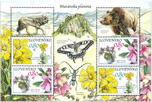 Zberatelia filatelie s motívom flóra a fauna sa isto tešia z tohto podareného kúsku. Hárček (aršík) obsahuje 2x známku s Lykovcom muránskym a 2x známku s Prvosienkou holou. Ako kupóny je pridaný vlk dravý a medveď hnedý.