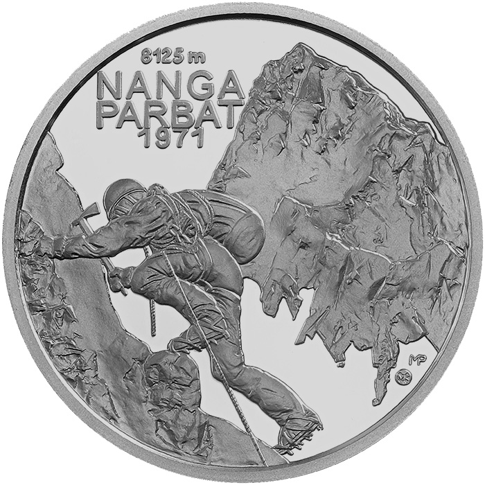 Na rube zberateľskej euromince je pohľad na vrchol Nanga Parbat, v ktorého popredí je postava lezúceho horolezca. V hornej časti mincového poľa je v dvoch riadkoch názov hory „NANGA PARBAT“, nad ním je označenie jej výšky „8125 m“ a pod ním letopočet jej zdolania slovenskými horolezcami „1971“. V pravej spodnej časti mincového poľa sú štylizované iniciálky autorky výtvarného návrhu zberateľskej euromince Márie Poldaufovej „MP“ a značka Mincovne Kremnica, štátny podnik, ktorú tvorí skratka „MK“ umiestnená medzi dvoma razidlami.
