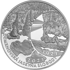Demänovská jaskyňa slobody je súčasťou Demänovského jaskynného systému, ktorého dĺžka presahuje 41 km. Pre jaskyňu sú charakteristické rozmanité formy sintrovej výzdoby najrozličnejších tvarov a veľkostí hrajúce množstvom farieb a odtieňov. Patria k nim aj impozantné siene a dómy pospájané chodbami. Riečka Demänovka, ktorá vytvorila celý jaskynný systém, jaskyňou stále preteká. Demänovská jaskyňa slobody patrí medzi najkrajšie slovenské jaskyne. Jej objaviteľ, moravský učiteľ Alois Král, prenikol do podzemia cez ponor Demänovky v auguste roku 1921. Objavil impozantné riečisko a neskôr pre majestátnosť priestorov a bohatosť výzdoby dostala jaskyňa pôvodný názov Chrám slobody. Život v jaskyni ovplyvňuje prítomnosť a kvalita vody. Ako významný biotop a podzemná mokraď je Demänovská jaskyňa slobody spolu s ďalšími jaskyňami Demänovskej doliny zaradená do Zoznamu mokradí medzinárodného významu v zmysle Dohovoru o mokradiach, ktoré sú významné predovšetkým ako biotopy vodného vtáctva. Motív na minci vychádza zo samotného objavu s motívom čakana ako symbolu pracovného nástroja a karbidky ako svetla, ktoré po prvýkrát preťalo podzemnú tmu v tejto jaskyni.