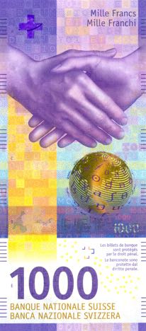 „Inšpiráciou novej série bankoviek je„ Mnoho aspektov Švajčiarska “. Každá denominácia zobrazuje typicky švajčiarsku charakteristiku, ktorá je potom graficky znázornená pomocou radu prvkov. Bankovka 1000-frank sa zameriava na švajčiarsky komunikačný talent, vyjadrený jazykom, ktorý je kľúčovým motívom bankovky. Prvkami jadra sú ruka a zemeguľa, ktoré sa objavujú na každej nominálnej hodnote v novej sérii. Podobne ako bankovky v obehu, deviata séria pozostáva zo šiestich nominálnych hodnôt; farebná schéma tiež zostáva rovnaká. Hlavná farba novej bankovky 1000 - frank je teda fialová. Formát bol však upravený - nové bankovky sú menšie a tým ľahšie sa s nimi manipuluje. Inovatívna kombinácia komplexných bezpečnostných funkcií a sofistikovaného dizajnu poskytuje najmodernejšiu ochranu proti falšovaniu. “
