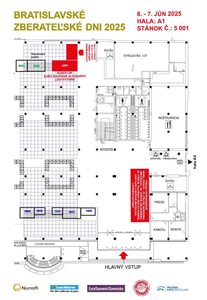 V našom stánku nunofi.sk vám radi poradíme , ako si efektívne chrániť a prezentovať svoju zbierku a prinesieme aj niekoľko špeciálnych noviniek. Môžete sa tešiť na zberateľské potreby Leuchtturm za zvýhodnené ceny. Nájdete u nás aj staršie vydania nových eurosuvenírov zo slovenska, čiech , maďarska aj poľska.