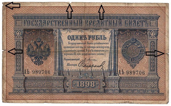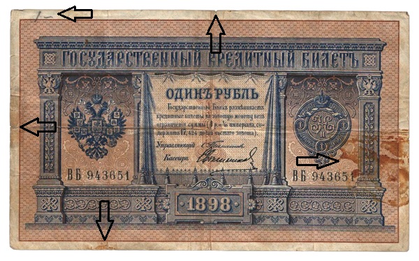 3 dobrý, priemerne zachovalý, prehyby vo všetkých smeroch, bez natrhnutia, v miestach prehybu slabo odrený, ale nie pretrhnutý, priemerne pošpinený. (VG)