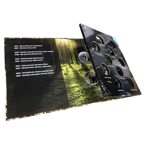 Hlucháň hôrny, známy aj ako Tetrov hlucháň, je fascinujúci vták z čeľade bažantovitých, ktorý obýva rozľahlé oblasti od tajgy až po Španielsko. Tento vták sa vyskytuje prevažne v prostredí, kde rastie borovica lesná. Dospelý samec môže dorastať až do výšky 90 cm a jeho hmotnosť dosahuje takmer 6 kg. Samec sa vyznačuje jedinečným červeným zafarbením okolo očí a svetlým zobákom, naopak samička je nevýrazná . Priemerný životný priestor jedného jedinca sa pohybuje okolo 30 km?, avšak za posledné roky sa tento priestor rapídne znížil na menej navštevované časti slovenských hôr. Súťaž na návrh tejto mince bola vyhlásená v auguste 2023, pričom do nej prihlásilo 21 návrhov. Porota vybrala návrh autora Tomáša Lamača, DiS. Na averze mince dominuje zobrazenie páru Hlucháňa hôrneho v jeho prirodzenom lesnom prostredí, doplnené o štátny znak, nominálnu hodnotu a ďalšie potrebné náležitosti. Reverz mince zobrazuje tokanie hlucháňa hôrneho, ktorý láka samičku svojím charakteristickým správaním. Je pozoruhodné, že druhé miesto v súťaži získal taktiež návrh Tomáša Lamača, DiS, a tretie miesto obsadila Adéla Dařbujanova, DiS. Táto minca poteší nielen zberateľov, ale aj všetkých milovníkov prírody, ktorí ocenia jej estetické a tematické zameranie. Minca tak predstavuje nielen hodnotný zberateľský kúsok, ale aj dôležitý príspevok k ochrane a propagácii našej prírody.