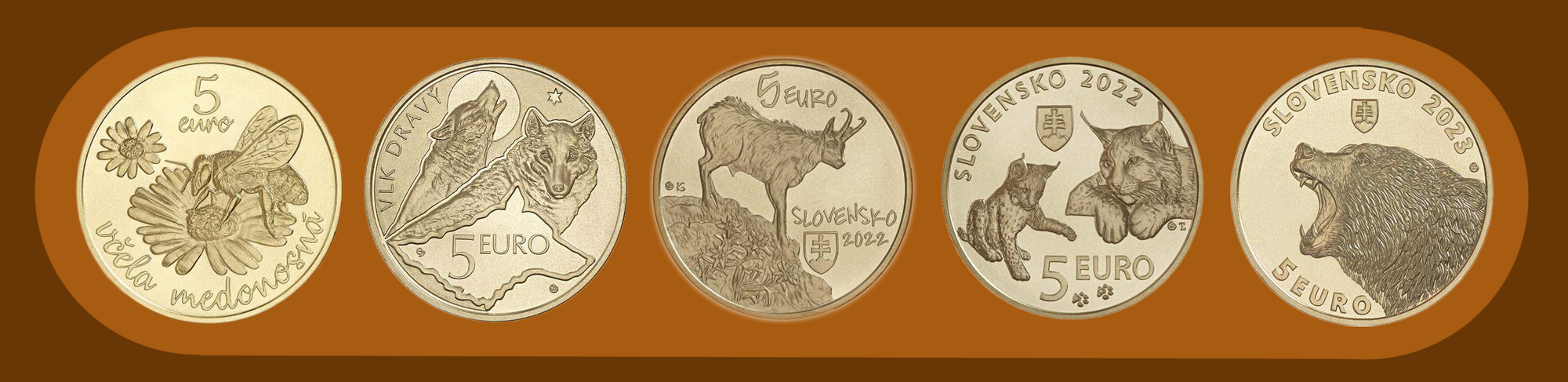 Prvou vydanou 5-eurovou mincou bola v roku 2021 emisia s motívom Včely medonosnej, ktorá mala okamžitý úspech medzi zberateľmi. Zberateľská minca zdôrazňuje ekologický význam včiel aj ich ohrozenie moderným poľnohospodárstvom a stratou prirodzených biotopov. Na reverze je detailne zobrazená robotnica pri práci, čo symbolizuje pracovitosť a harmonický život v úli.